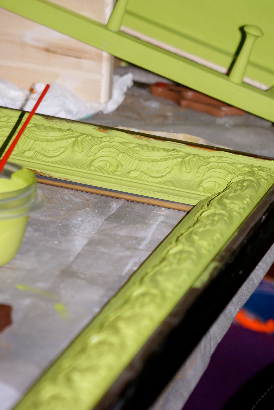 I would definitely recommend doing this. The frame is gorgeous, and all it needed was a little putty, sanding, and a few coats of apple green paint!